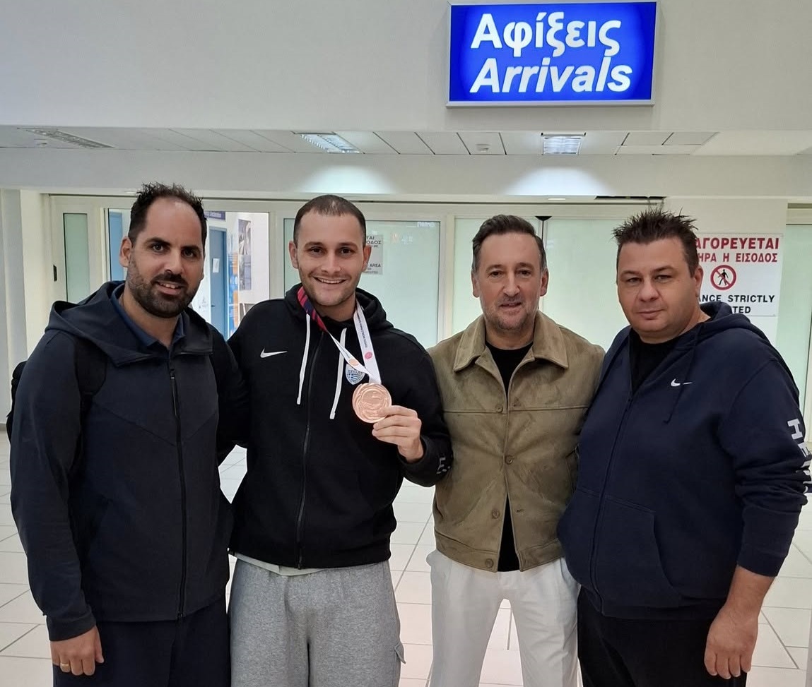 Θερμή ήταν η υποδοχή για τον Δημοσθένη Μιχαλεντζάκη και τον προπονητή του Τάσο Καλλιτσάρη, κατά την επιστροφή τους στη βάση τους. Κατά την άφιξη τους