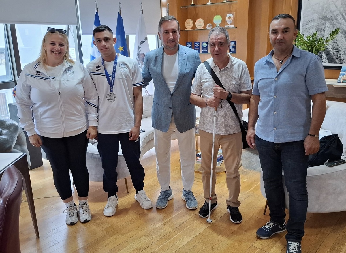 Ο Δήμαρχος Αλεξανδρούπολης Γιάννης Ζαμπούκης και ο αντιδήμαρχος Αθλητισμού Ηλίας Δαστερίδης υποδέχθηκαν στο γραφείο δημάρχου, τον ασημένιο αθλητή του Κοτινος Α.Σ. ΑμεΑ Χαλήλογλου Ταϊφούρ, ο