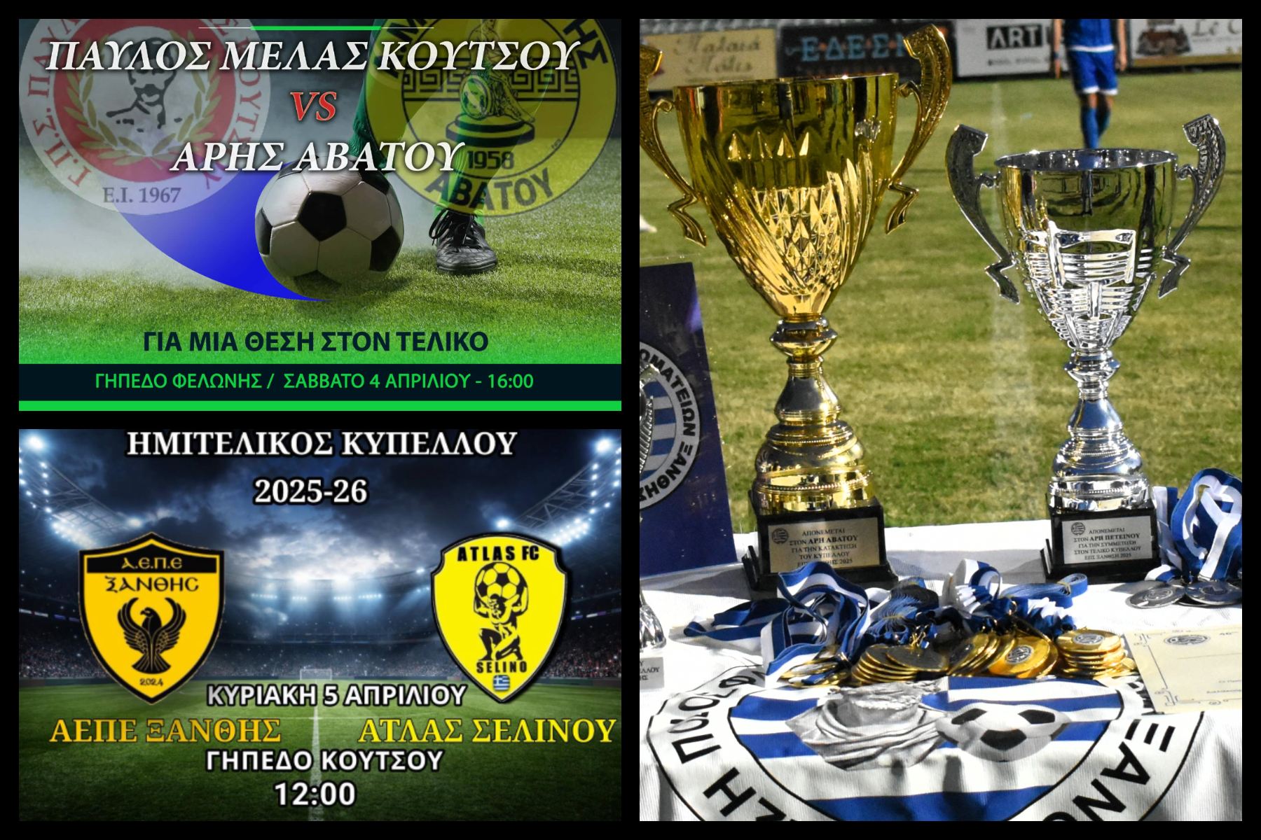Όλα έτοιμα για τον σπουδαίο ημιτελικό αγώνα μεταξύ του Παύλου Μελά Κουτσού και του Άρη Αβάτου που θα ξεκινήσει στις 16:00 στο γήπεδο της Φελώνης